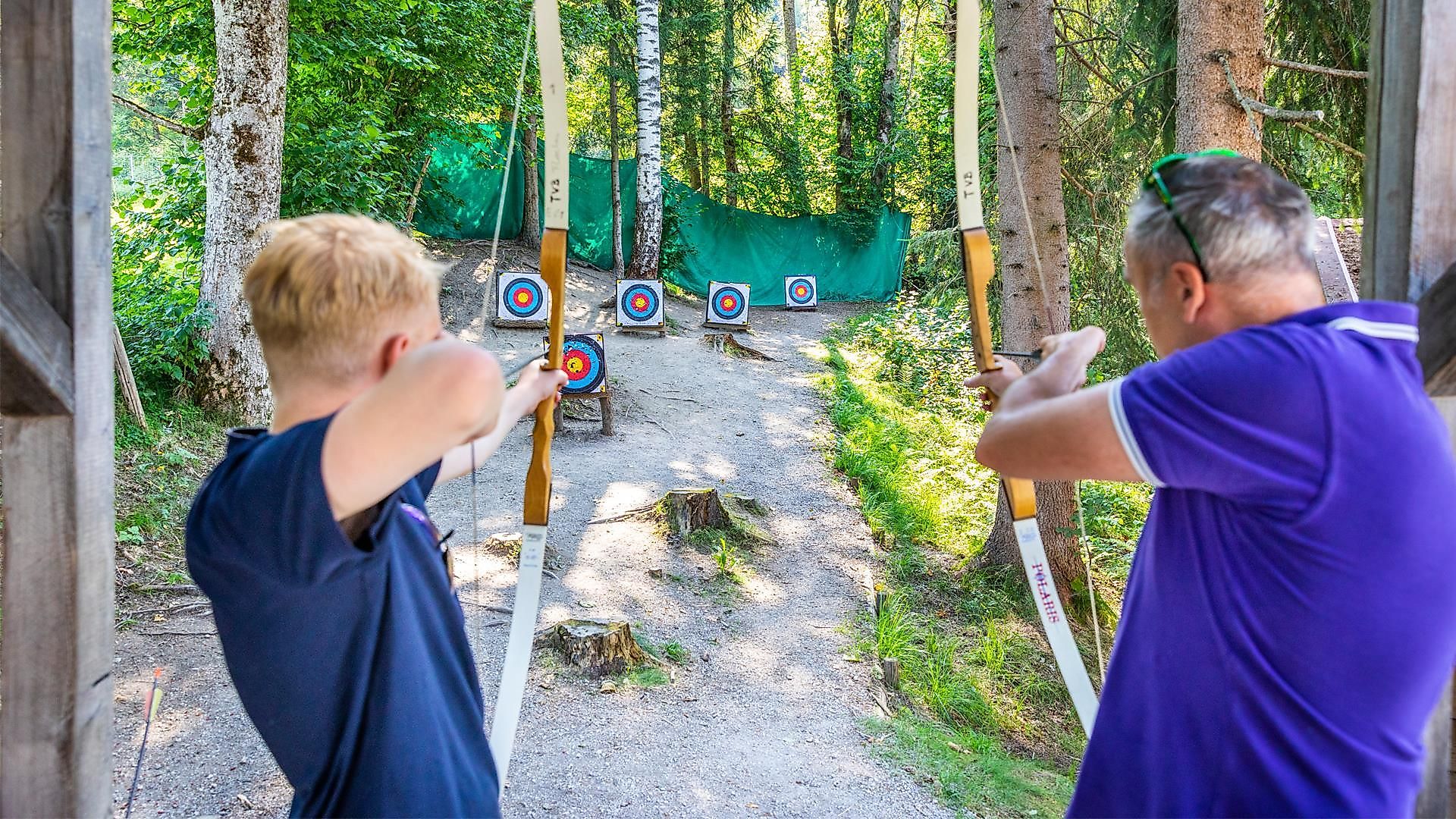 Mit Pfeil & Bogen in der freien Natur! Bei unserer Bogenschießanlage könnt ihr mit professionellen Bögen auf Zielscheiben in verschiedenen Distanzen schießen. Frei nach dem Motto: auf Robin Hood`s Spuren! Für alle Bogenschützen ab 8 Jahren.