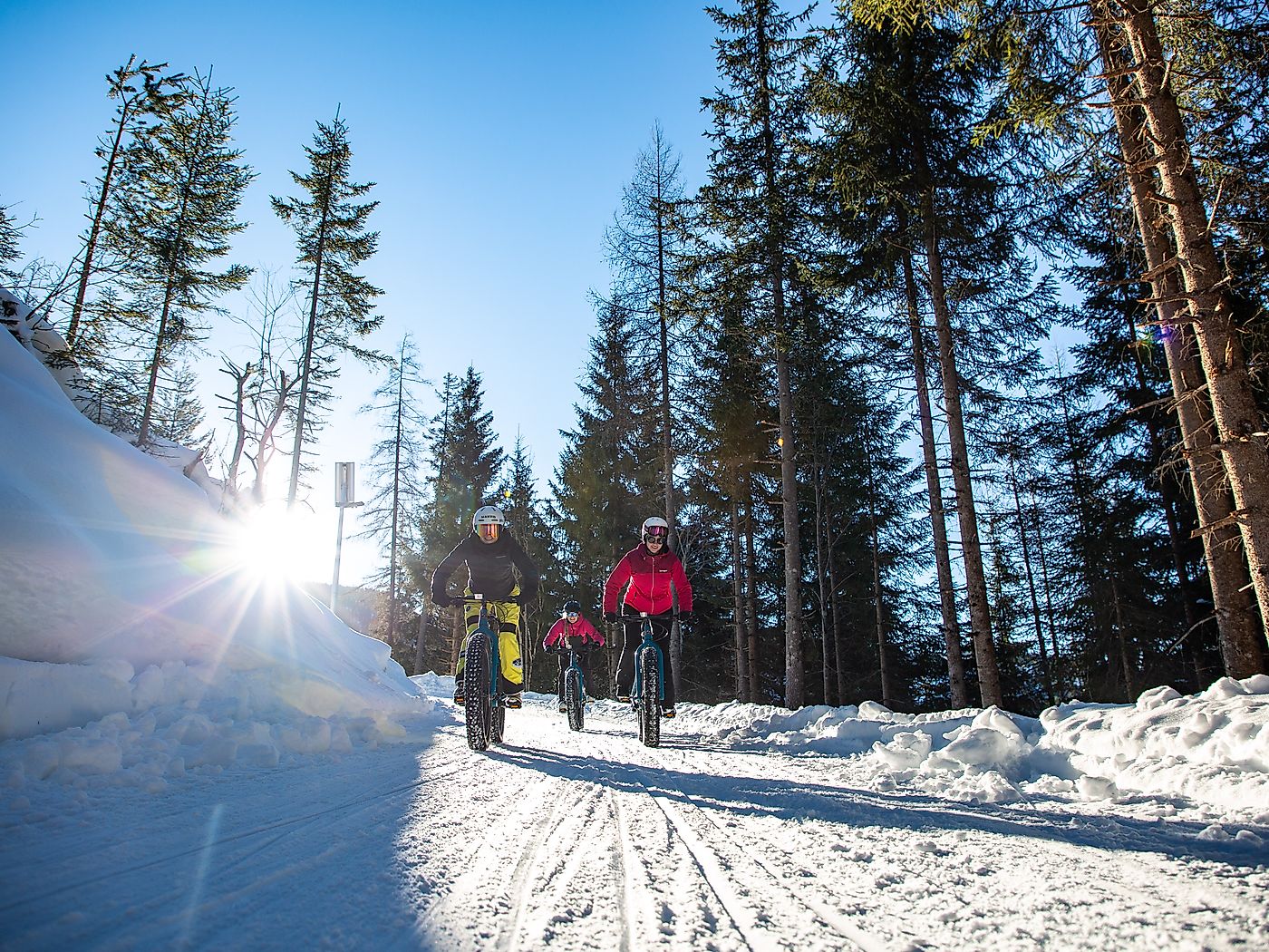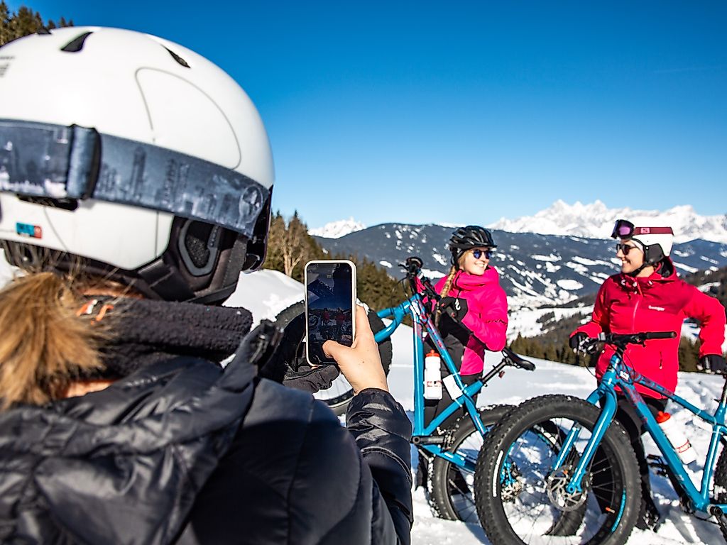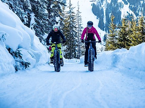 Mit Reifen bis 4,8 Zoll Breite und Luftdruck um 0,5 Bar machen die trendigen Fatbikes biken auch im Winter möglich. Bei uns in Flachau könnt ihr diesen Trendsport gerne ausprobieren. Ihr braucht nur sportliche Kleidung und feste Schuhe. Unsere Guides sorgen für ein besonderes Bikeerlebnis im Schnee. Die geführte Tour geht durch die zauberhafte Winterlandschaft zum Berggasthof Sattelbauer oder zum Winterbauer.