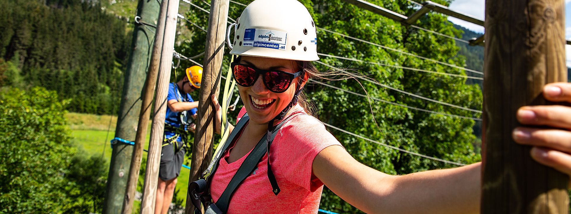Fast jedes Mal, wenn ich zum Schwimmen und Abkühlen an den Badesee Flachauwinkl gekommen bin und gesehen habe, wie die unterschiedlichsten Leute den dortigen Hochseilgarten durchklettern, hab ich mir vorgenommen, das werde ich auch eines Tages tun. Aus dem „eines Tages“ haben dann meine Freunde Susi, Luki und Gerald ein „Jetzt oder nie“ gemacht und mir zum Geburtstag die gemeinsame Tour geschenkt.