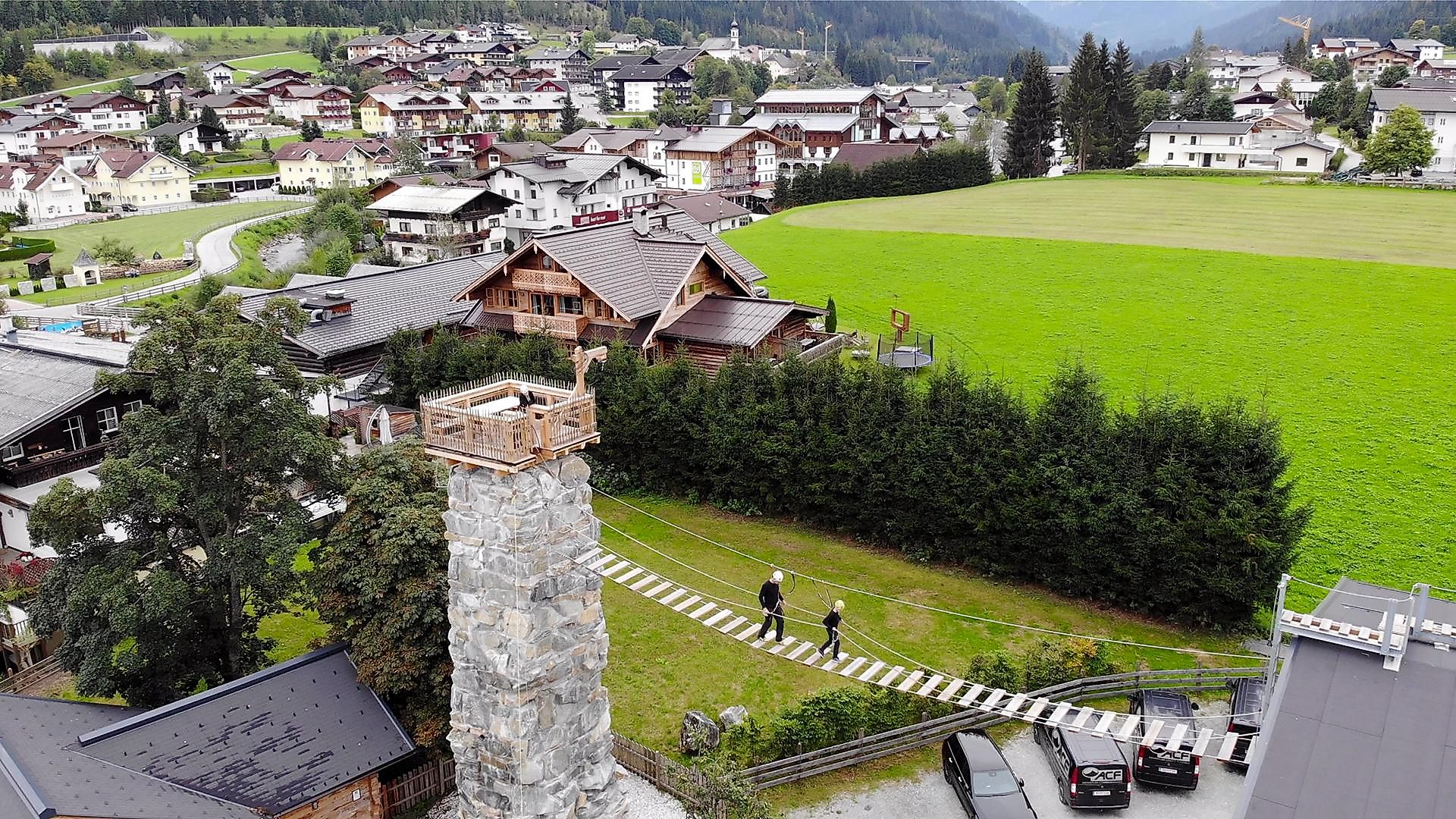 Es geht hinauf auf den Almlustrock – unseren Hauskletterfelsen – über die Hängebrücke auf das Almlustdach und mit dem Flying Fox über den Almsee zum Hochseilgarten, wo ihr wieder festen Boden unter die Füße bekommt.