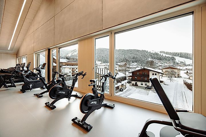 In unserem neuen, professionell ausgestatteten Trainings Hub. Alias LOFT GYM. Im 2. Stock kannst du beim Cardio-Training deine Ausdauer stärken, ausgewählte Muskelgruppen in Form bringen oder beim Spinning deine Bike Performance verbessern. Und das mit einem super Ausblick, den wir auch Flachau Gästen nicht vorenthalten.