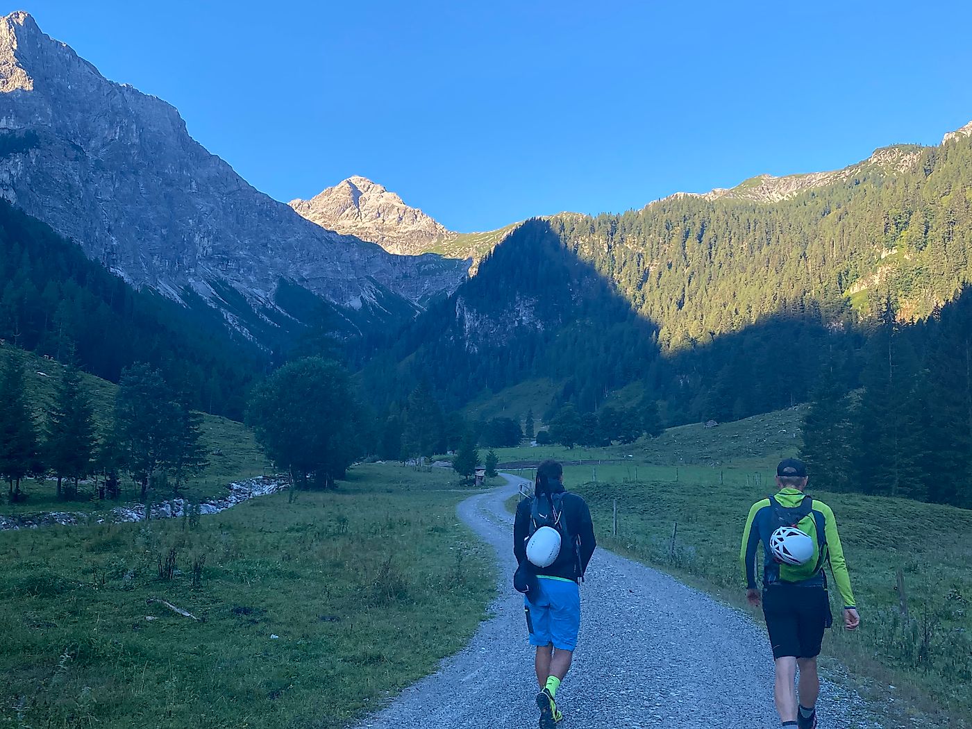 Gestartet sind wir im Marbachtal. Zuerst eine schöne Forststraße entlang inmitten vom Salzburger Almengebiet. Vorbei an unzähligen Kühen, Bächern und grünen Wiesen. Kaum zu glauben, nur 10 Minuten entfernt von der Abfahrt Flachauwinkl- keine Autogeräusche, kein Lärm, nur das Zwitschern der Vögel, sowie das Läuten der Kuhglocken! - Der perfekte Platz zum Abschalten und Genießen. Nicht umsonst befindet sich dort auch der Kraftplatz von Skilegende Hermann Maier.