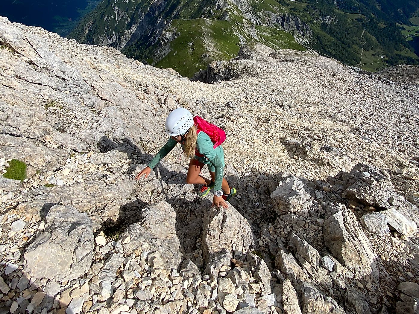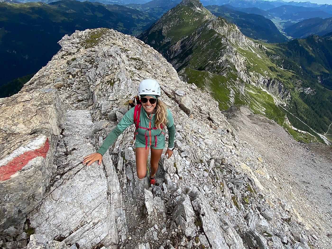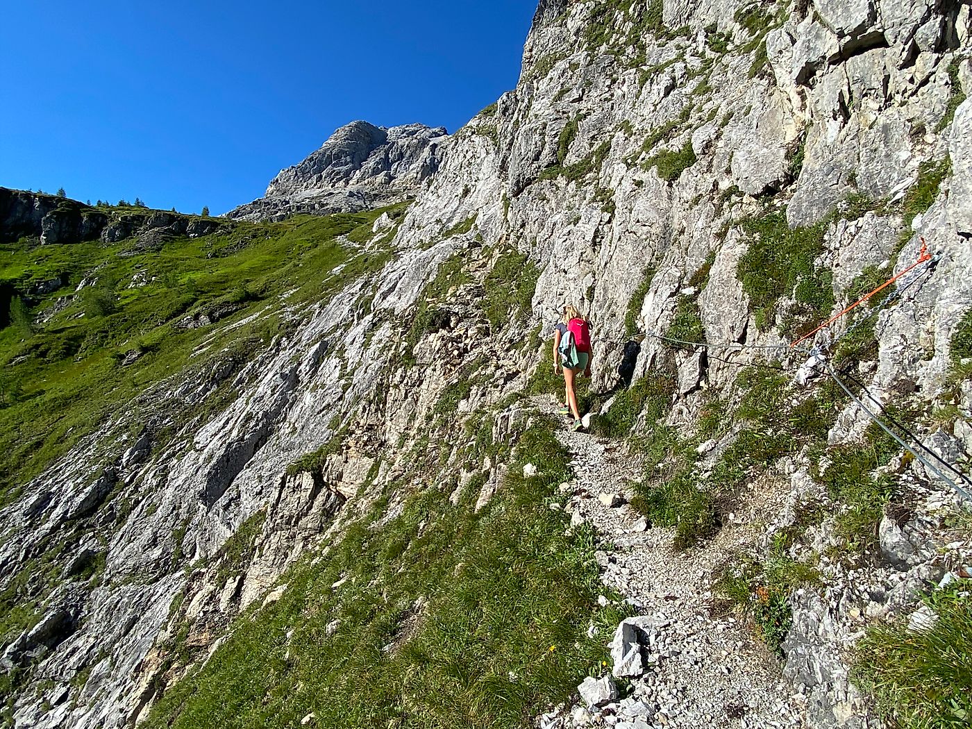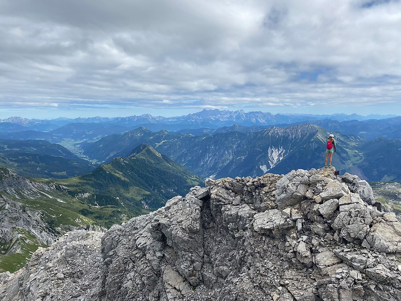 Ein Klettersteig Set wird hier aber nicht benötigt. Der Weg ist sehr gut markiert und teilweise seilversichert. Der Aufstieg im Fels ist aber doch sehr anspruchsvoll und man wird bei der ca. 250hm Aufstieg mit einer Traum Aussicht rund um Salzburger, Steirische und Tiroler Bergwelt belohnt!