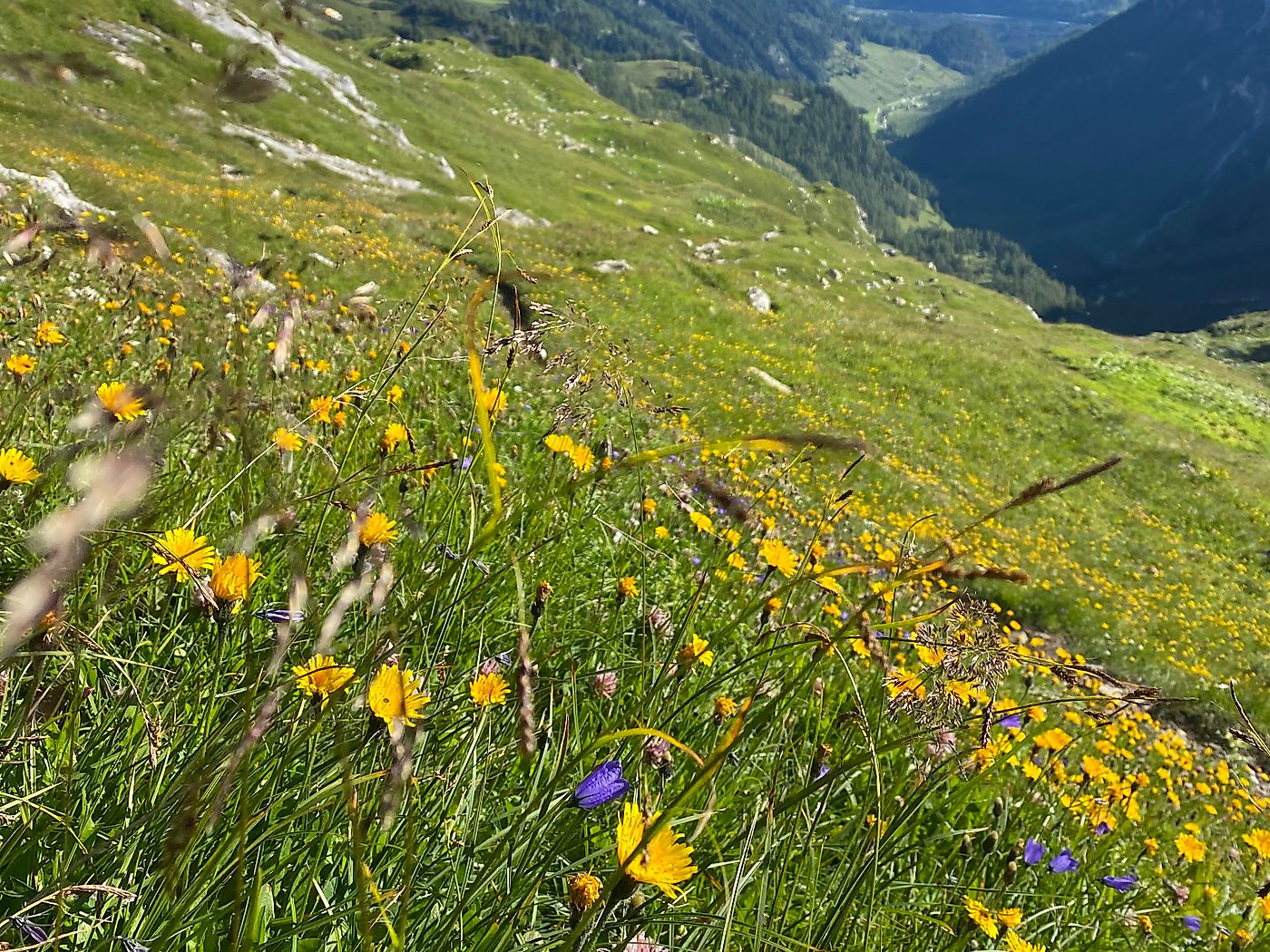 Nach ca. 1000hm schauen wir ins Tal zurück, wo wir gestartet sind. Was für eine Aussicht über das Marbachtal.