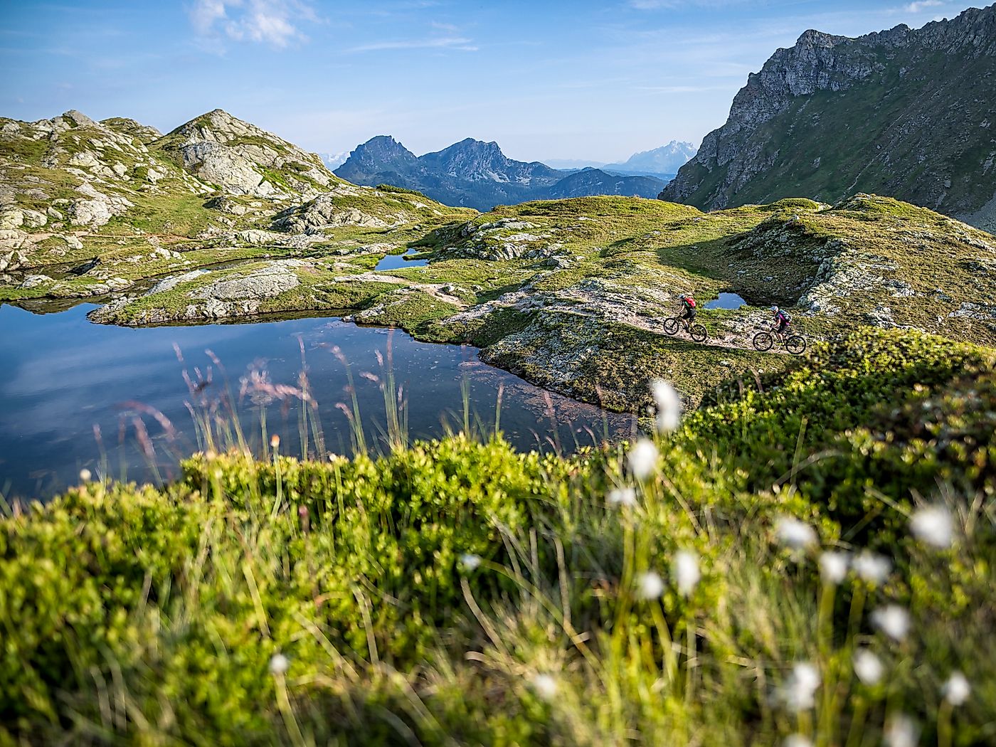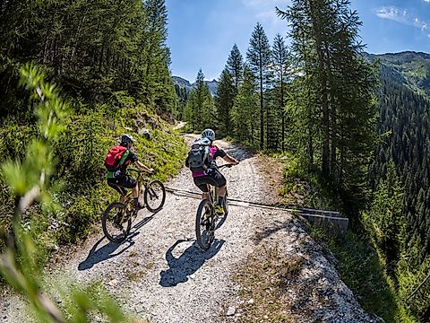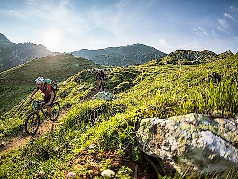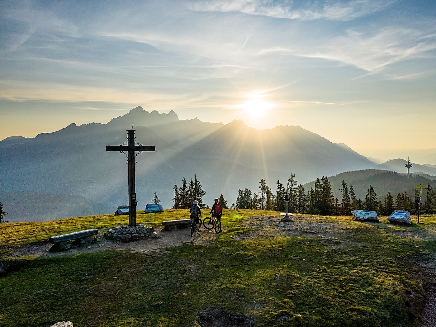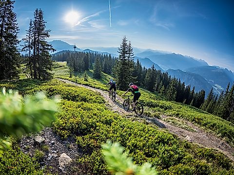 Noch einmal lassen wir unsere Blicke in Richtung Dachstein schweifen, bevor wir den letzten coolen Trail hinunter nach Flachau unter die Räder nehmen.