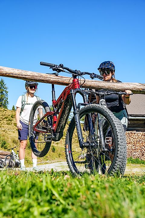 Kontrolliert vor jeder Fahrt die Funktionstüchtigkeit eures E-Mountainbikes und informiert euch vorab über das Wetter. Zur eigenen Sicherheit wird außerdem das Tragen eines Helmes empfohlen.