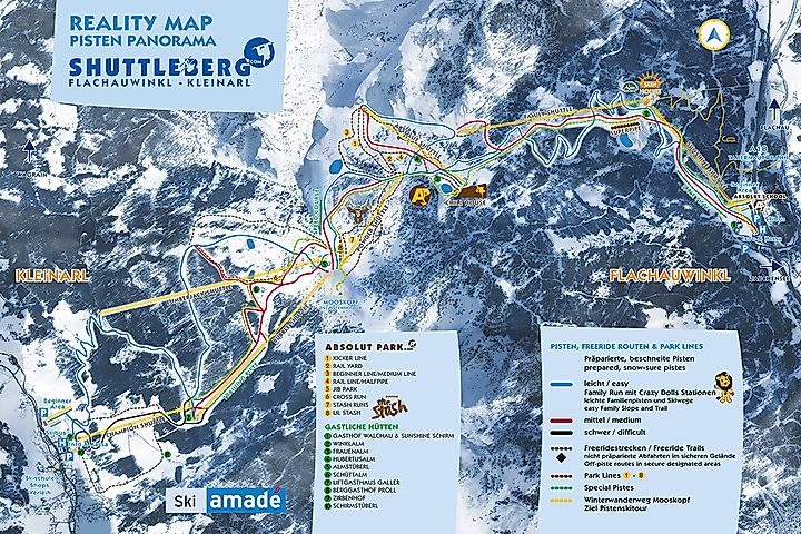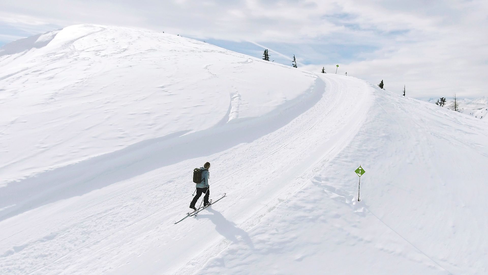 Markierte Skitourenroute entlang des Pistenrandes im Skigebiet Shuttleberg Flachauwinkl zum Mooskopf.