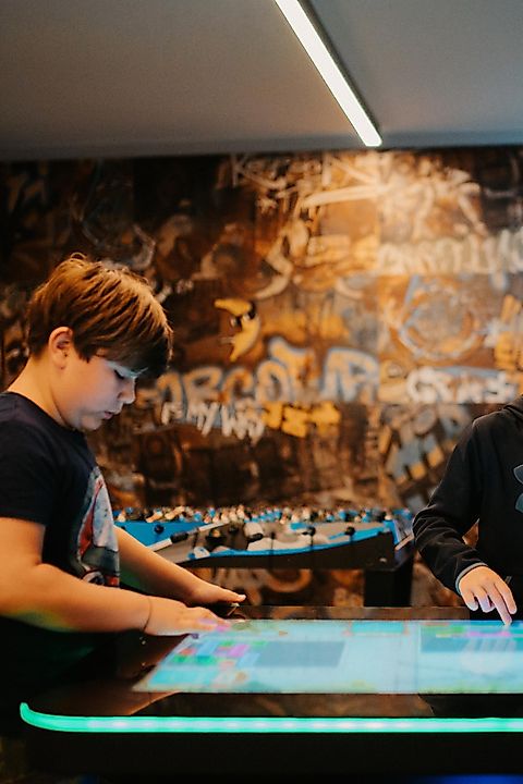 Kinder haben bei uns ihren eigenen Platz zum Entdecken und Entspannen: mit einem gemütlichen Spielzimmer im Haus und einem kleinen Spielplatz im Garten für die sonnigen Tage.