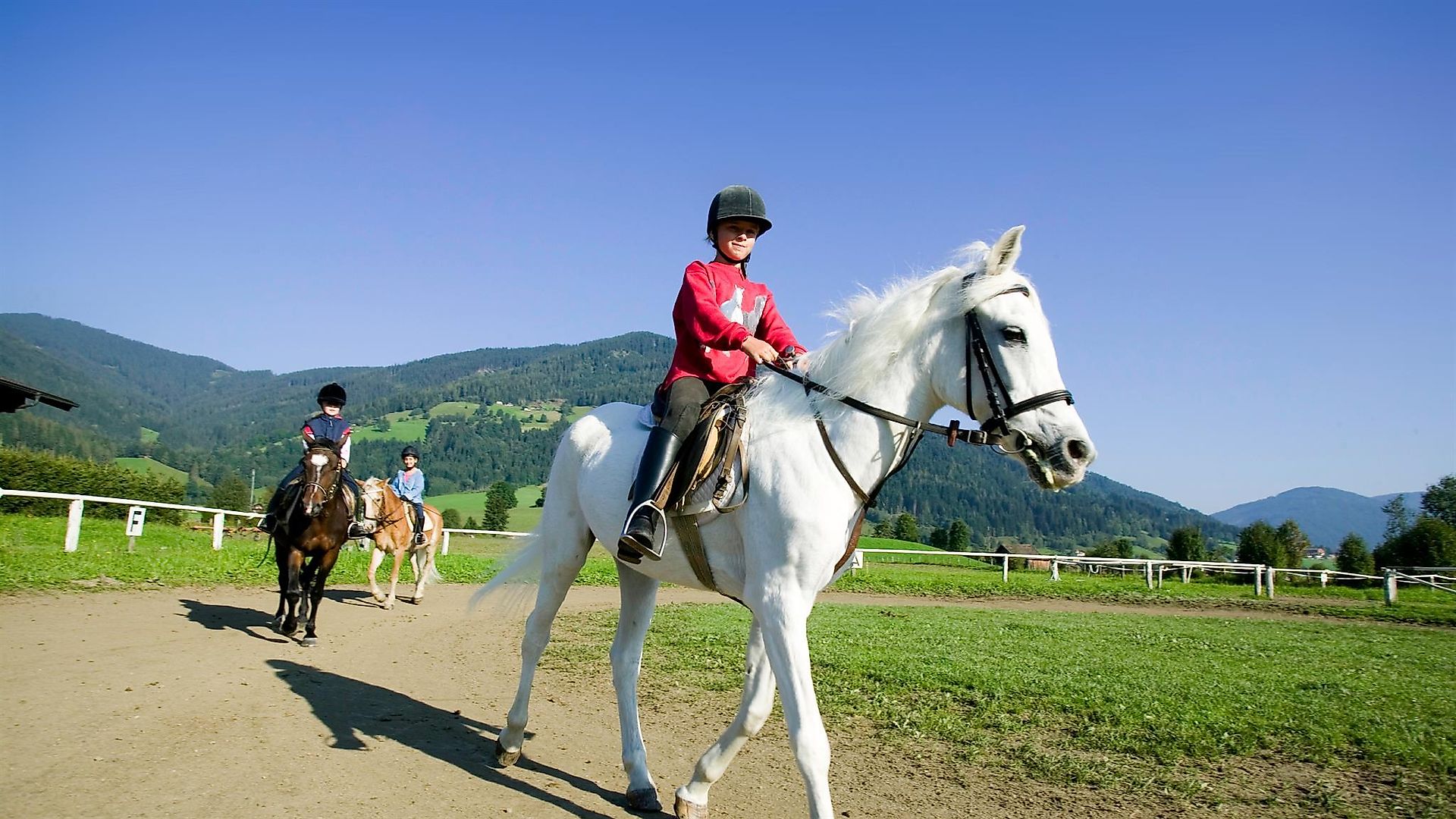 The taster riding lesson is for children and adults who want to try this sport or are still beginners. Riding at a walk and trot, braking and steering and learning riding arena figures are our goal in the first riding lessons.