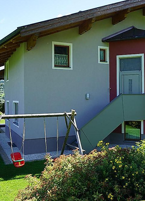 Nach Neugestaltung unseres Hauses 2017 wurde die Aussenfassade erneuert, Innen ist der Charakter eines Bio-Holzhauses erhalten geblieben.