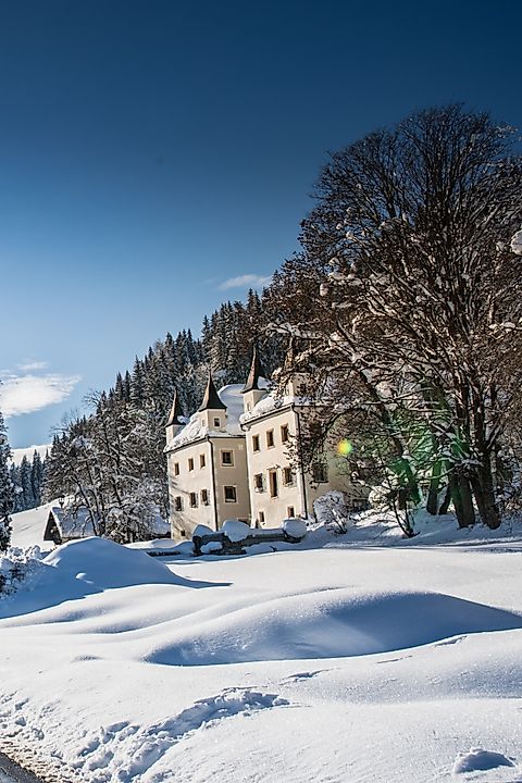 The snowshoe route begins in Reitdorf, 50 meters behind the Opel Esser car workshop, and first goes uphill through the Reiteckwald forest and continues to the Tauern cross-country ski trail. Then it follows the trail towards Wagrain and after about 1 km turns right along the winter hiking trail to the idyllic Schloss Höch. After another loop next to the trail, it returns via the ascent path back to Reitdorf.