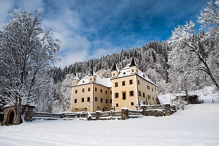 Pleasant snowshoe route starting from Reitdorf through the Reiteckwald forest to the beautifully situated Schloss Höch.