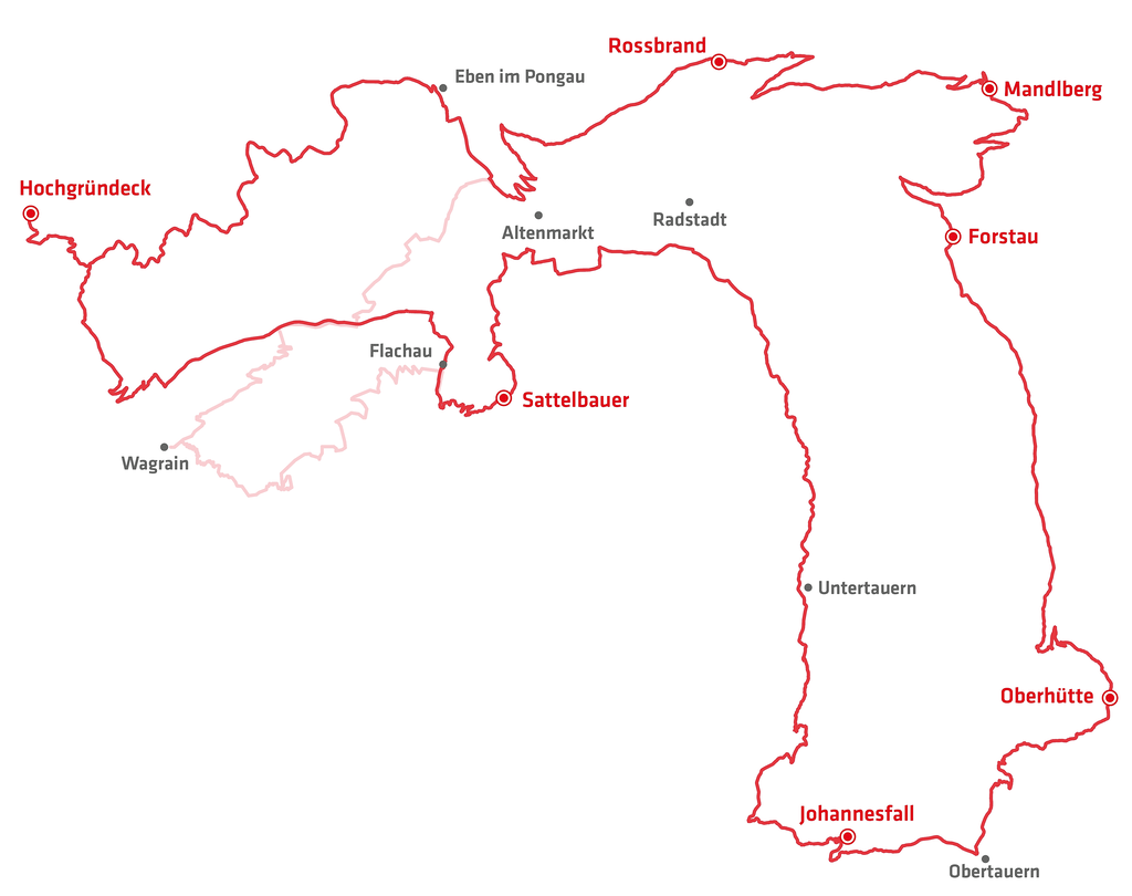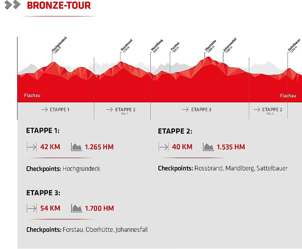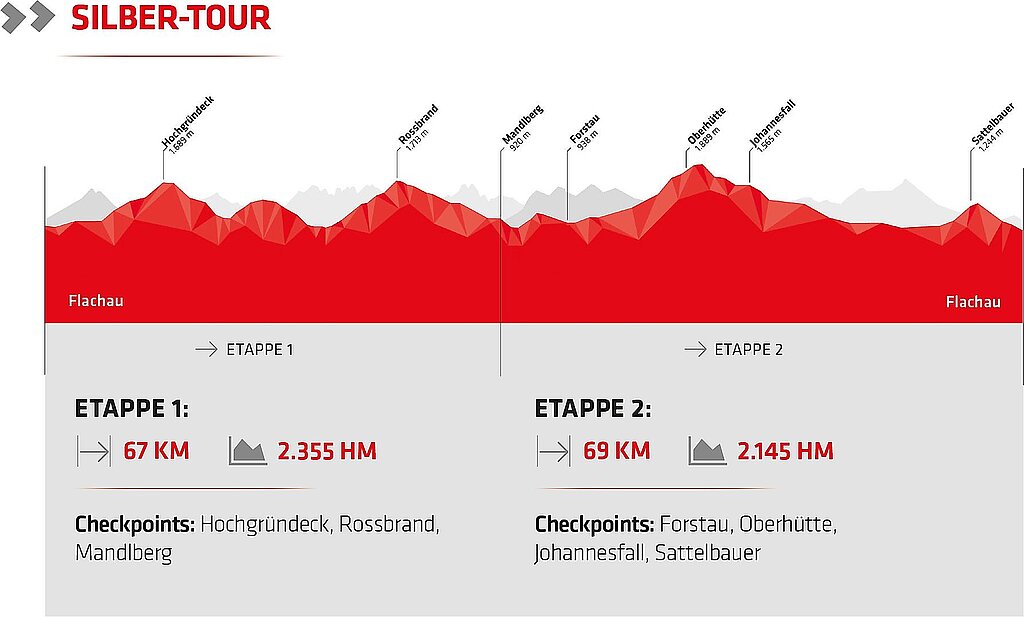 Auch in der Saison 2023 gibt es eine Besonderheit: Gleiche Höhenmeter, aber ein etwas anderes Erlebnis. Wegen Bauarbeiten zwischen Flachau und Wagrain werden in jenen zwei Saisonen die Checkpoints Grießenkar und Edelweiß-Alm und der Bikepark Wagrain nicht angefahren. Dafür wird es einen neuen Checkpoint geben: Über den Ginausattel nördlich von Wagrain geht es hinauf zum malerischen Hochgründeck auf 1.800 Metern Höhe. Durch Eben im Pongau geht es zurück auf die Originalroute.